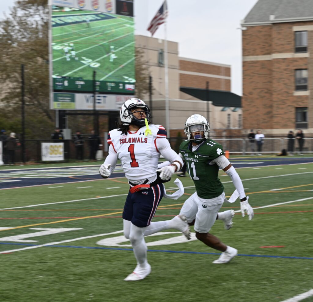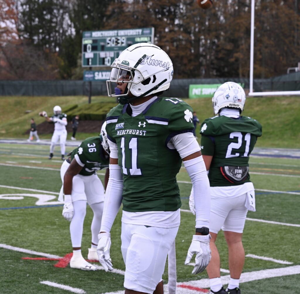 I also had a chance to catch Adonis Marshall in action. He picked up a tackle, came very close to intercepting a pass, and played excellent coverage all day. I also managed to get a photo of Marshall and Ja’Meir Gamble, who had significant playing time this year but was unable to play this week due to injury. Daylan Pringle also plays for Mercyhurst but I was unfortunately unable to get a picture of him.