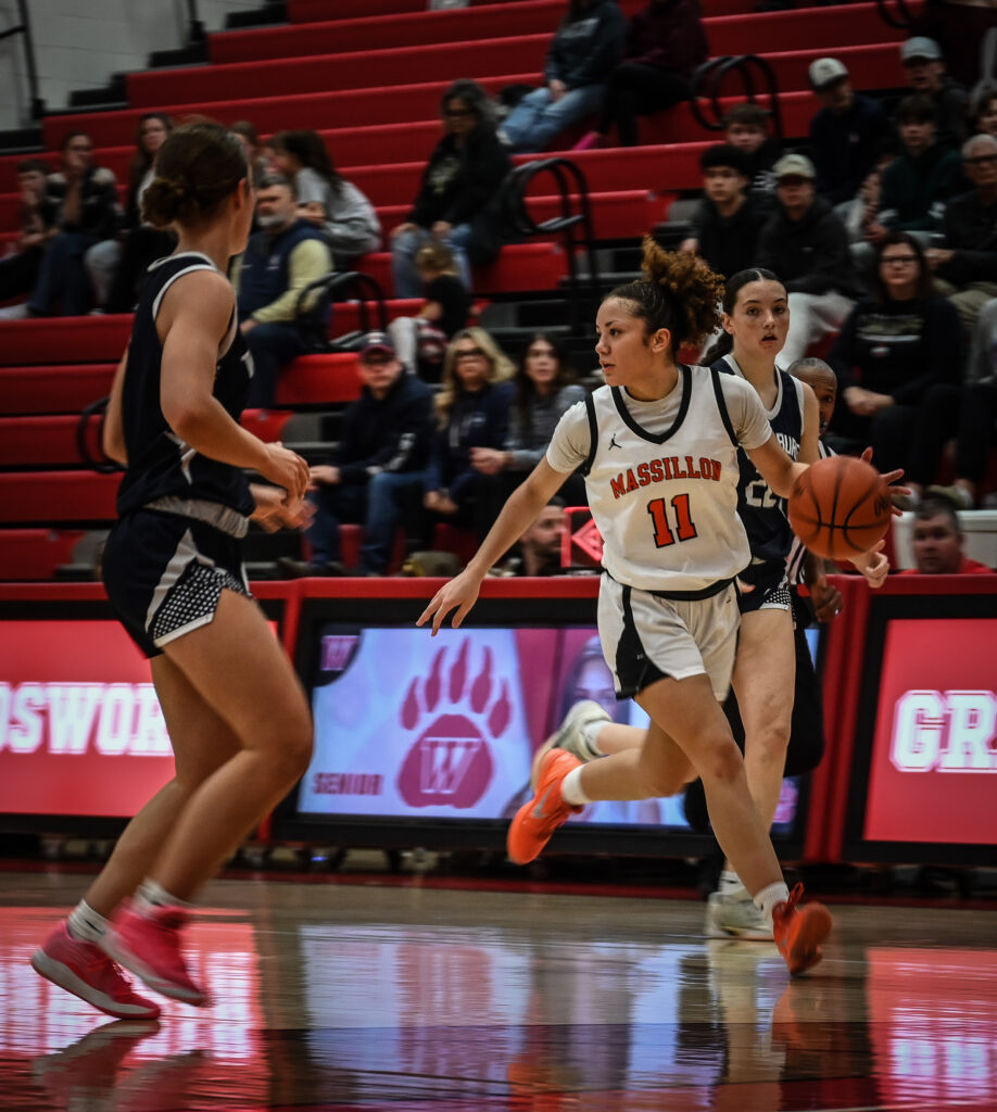 Twinsburg started the second half with a 7-0 run, increasing their lead to 11; they led by as many as 12. Kynslie Williams was the first to spark the Massillon offense this time, and it was a spark that put them back in the game. Following her 2-point shot, Hannah Nicola went coast-to-coast for 2. Next it was Delaney Pierce, who stole the ball, scored, and followed it up with a 3 to make it a two-possession game. She followed the 3 up with a layup to cut the lead to 1 at 34-35. Twinsburg went on a run to extend the lead to 41-35 with 2:00 remaining in the 3rd. Nicola cut to the basket off a Williams pass and scored, but Twinsburg answered with a 3. Adams knocked down a 3 in response, and Pierce took it into the paint for 2 to cut the deficit to 42-44 at the end of 3 quarters. The Tigers of Twinsburg once again went on a quarter-opening run to start the 4th, outscoring Massillon 4-0 to start. Pierce got Massillon back into action with a 3, and Nicola banked it in with 5:00 remaining in the game to make the score 47-50. An offensive foul on the Twinsburg end gave Massillon the ball, and Pierce shot past defenders, put it in, and was fouled. After she drained the free throw, the game was all knotted up at 50. Williams stole the ball and Pierce drilled a 3 from the front point to put Massillon in front by 3 with 3:35 remaining. A Twinsburg 3 rimmed out and Pierce scored once more for Massillon, giving them a 55-50 lead. On the other end, Twinsburg was able to hit a 3 with 2:00 left to cut the deficit to 2. Nicola quickly responded with 2. Her basket was matched on the other end. With under a minute remaining, the tide quickly turned for Massillon as Pierce was knocked down and a foul was not called. Twinsburg went all the way for the tying score. Nicola took the ball towards the paint in an attempt to regain the lead, but was grabbed by a defender (as another potential foul call was missed) and Twinsburg stole the ball. A foul led to Twinsburg free throws, and they took a 2-point lead with seconds remaining. Massillon had one final attempt but was unable to make a shot. They were forced to foul and went down by 4 after the free throws were made. The ensuing inbounds pass was stolen, and Twinsburg laid in a buzzer-beater to take a 63-57 victory.