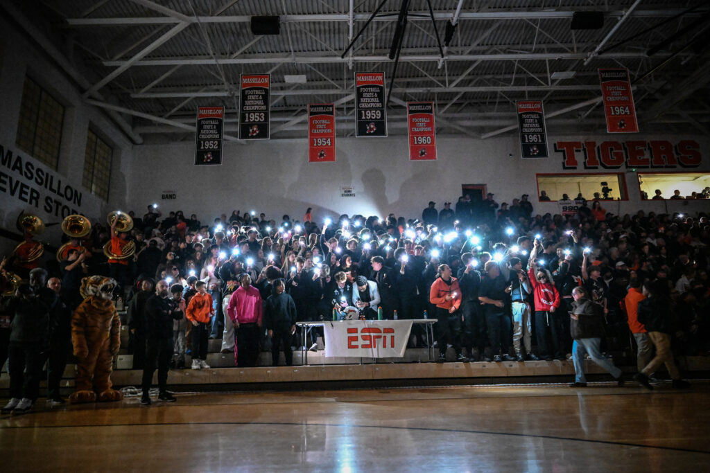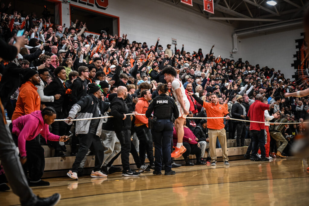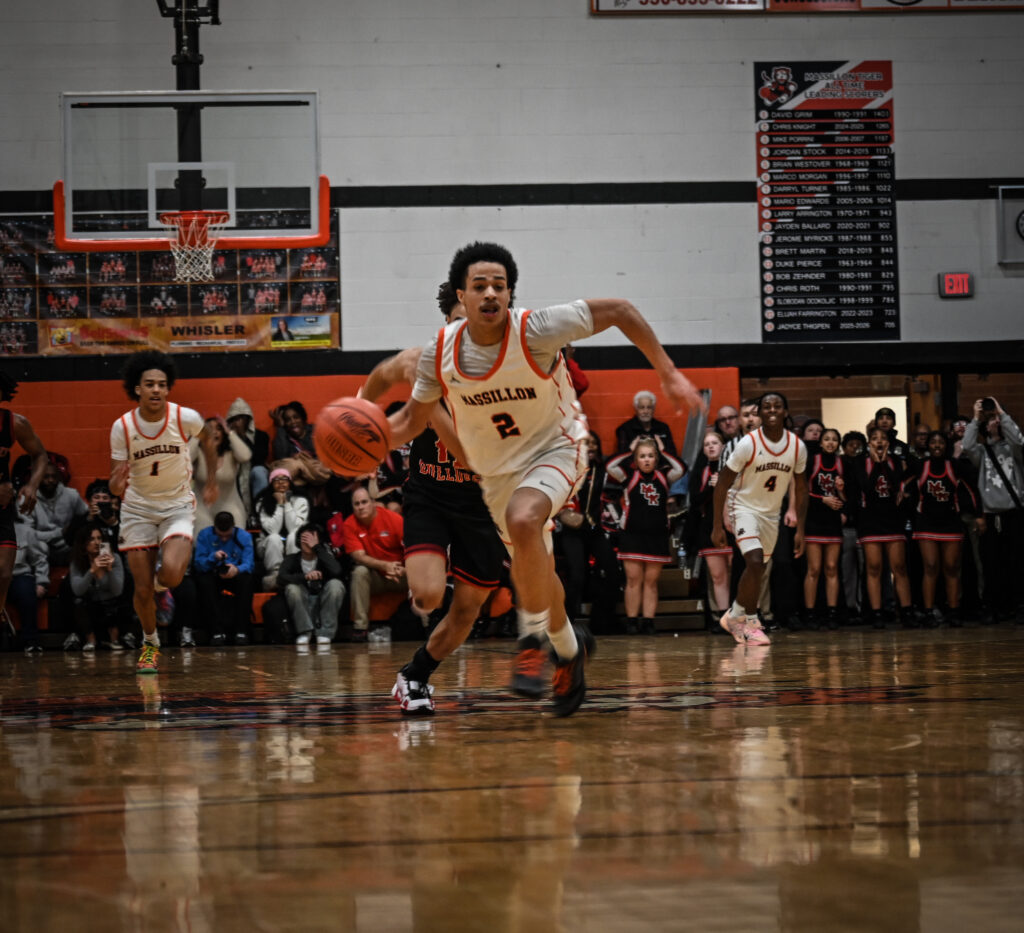 McKinley opened up the second half quickly with a bucket. Massillon missed a shot on their end but forced a turnover, and Xavier Williams drilled a 3 to cut the lead to 8. McKinley answered immediately with an And-1, and after a few minutes would have their largest lead at 51-37. Massillon’s offense stepped up and went on a run of their own. A Braylon Gamble shot went around and in, and Williams drilled a pair of 3s and hit a jumper to cut the lead down to 47-53. The Tigers were stepping up on defense as well– turnovers and missed shots on the McKinley end led to the Massillon run. The package sub of Terrion Wells and Marcus Garner aided the Tigers greatly as the pair picked up multiple rebounds on a Bulldog squad that was excellent off the boards. Braylon Gamble hit a 3-pointer after yet another McKinley turnover, and a Gio Jackson Jr. 3-point play cut the McKinley lead to 53-55. At the end of 3 quarters, the score was 54-57 in favor of the Bulldogs. The first few minutes of the 4th quarter were back-and-forth between the two talented squads. Jadyce Thigpen tied the game up at 59 after a spin move that left defenders dizzy. Williams drilled a 3 to give Massillon their first lead in a long while, but the Bulldogs answered once again with a run to take the lead. The last several minutes of the game were the most intense that Massillon basketball fans have witnessed in years. Massillon repeatedly tied the game, and McKinley answered without fail, at least until the final seconds. The Tigers cut the lead to 1 with 1:56 remaining and had the chance to take the lead, but a missed shot led to a McKinley layup, and the score was 75-72 in favor of the Bulldogs. The Tigers took the ball up court with a decision to make. Thigpen decided to go for it all and drilled the game-tying 3 from the left point with 35 seconds remaining. McKinley attempted to hurry down the floor, but Isaiah Lamp read a pass perfectly and intercepted it, taking the ball down to the paint where he was fouled with 18 seconds remaining. Lamp coolly knocked down both free throws, giving Massillon a 77-75 lead. McKinley was overwhelmed by the Tiger defense on the other and were forced to call timeouts. They had one more chance with 6.8 seconds remaining. Thigpen knocked the ball loose, but the Bulldogs still had seconds to recover and shoot. Jackson and Gamble both went high to alter a potential game-winning 3, and Wells defended a putback and grabbed the rebound to put the game in the books. The Tiger crowd went ballistic as Massillon knocked off the Bulldogs in what will be long remembered as one of the most intense and anticipated games in the rivalry’s history.