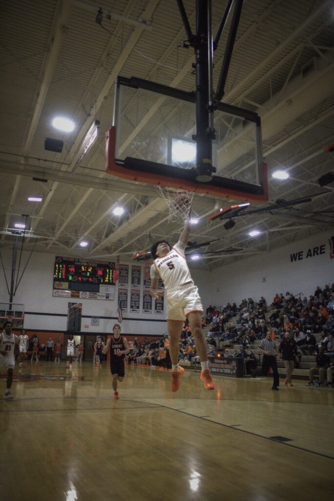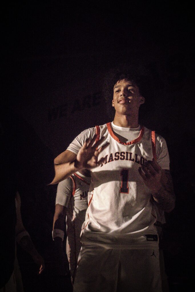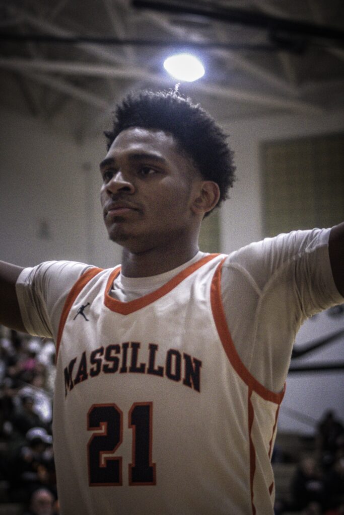 Ashland started the game off the game with a trademark three-pointer, one of many they would shoot during the contest. Xavier Williams quickly answered with a layup and was fouled; he hit the following free throw to tie the game up. Terrion Wells was the next to score for Massillon following a few misses on both ends. He added another layup off a Williams pass and Braylon Gamble crashed through for 2 to keep Massillon in front. Jadyce Thigpen swished a 3 and added a layup off of a Wells steal to make the score 20-15 in favor of the Tigers after 1. Wells opened the 2nd quarter with a steal-and-score. An Ashland offensive foul led to Thigpen weaving to the basket for a score. Soon after, Gamble hit a free throw to give Massillon their first double-digit lead at 25-15. Ashland continued to rain down 3s, but missed quite a few as the Tigers continued to make their way to the basket for layups. The Arrows cut Massillon’s lead down to 6, but a hail of shots on the Tigers’ end– including a pair of 3s from Isaac Maxheimer and a dunk from Gio Jackson Jr.– bumped their lead back up. Soon after, the Tigers put on the press in the backcourt and Williams stole the ball. Wells finished off the possession with a layup and Gamble finished off the quarter with a 3 to put Massillon on top 43-30 at the half.