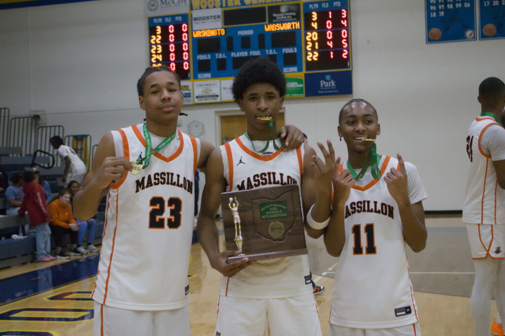The shot at the buzzer before the half would be the last made shot from any point of the court for Wadsworth for the next 12 1/2 minutes of play. It would, in fact, one of the few shot attempts that the Grizzlies had until the 4th quarter. Massillon’s defense was so heavily swarming that they would pitch a shutout and rarely allow an attempted shot until the second group of reserves came in with just a few minutes left in the contest. Three straight steals opened up the second half as Massillon annihilated the Grizzlies’ offense. Gio Jackson Jr. added a pair of buckets, Jadyce Thigpen put one in, and Xavier Williams also put a pair of shots in as the Tigers piled it on. Senior Damarion Day put the icing on the cake in the 3rd quarter as he took it to the basket for a score and a 49-16 lead. Massillon made it a running clock in the 4th with a couple quick scores from Jackson Jr. and Terrion Wells. With 6:00 remaining, the Tiger reserves checked in. With just a couple minutes remaining, the Junior Varsity line checked in. Wadsworth scored their first bucket since the 2nd quarter with 3:30 remaining in the 4th. The Tigers milked the clock and walked out with a blowout 55-22 victory and their first district title in 22 years.
